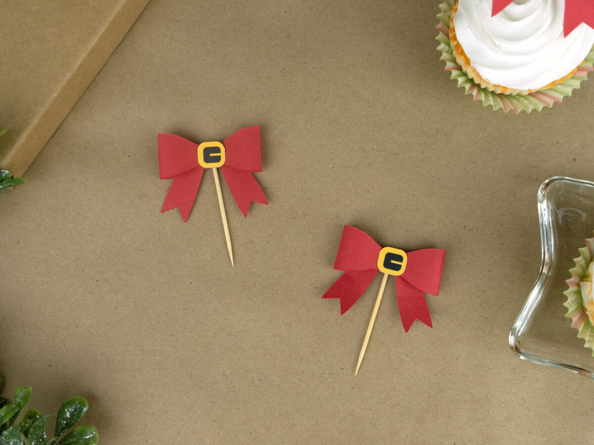 These cute Santa Ribbon Bow cupcake toppers/ Appetizer Picks are perfect for decorating for a holiday party or baking!