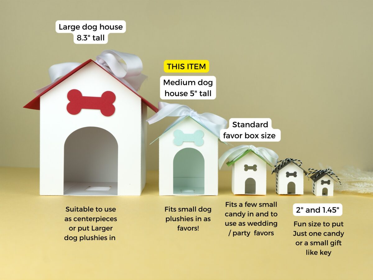 Dog House Favor Box Medium Size | fits small plushies | Set of 6 Choose Roof Colors