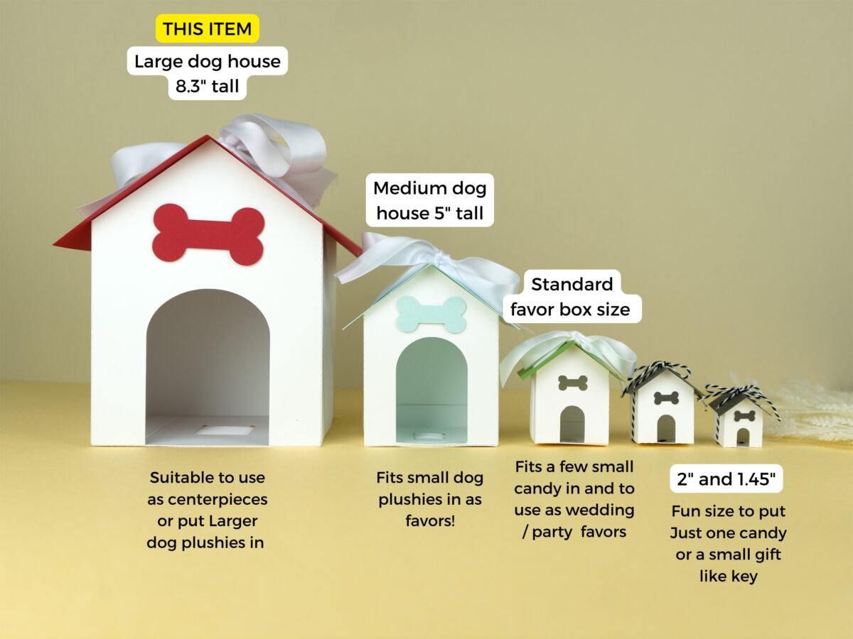 By popular demand, we’re introducing our Large-sized dog house Centerpiece boxes! These boxes are large enough to hold medium sized plushies or multiple small sized plushies, and be sure to take your puppy-themed party to the next level.