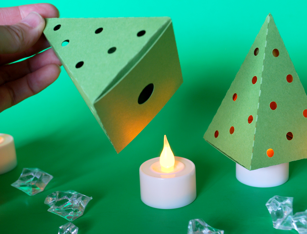 – Put your battery operated tea light candle INSIDE the box for a modern Christmas tree Decor (picture 1)