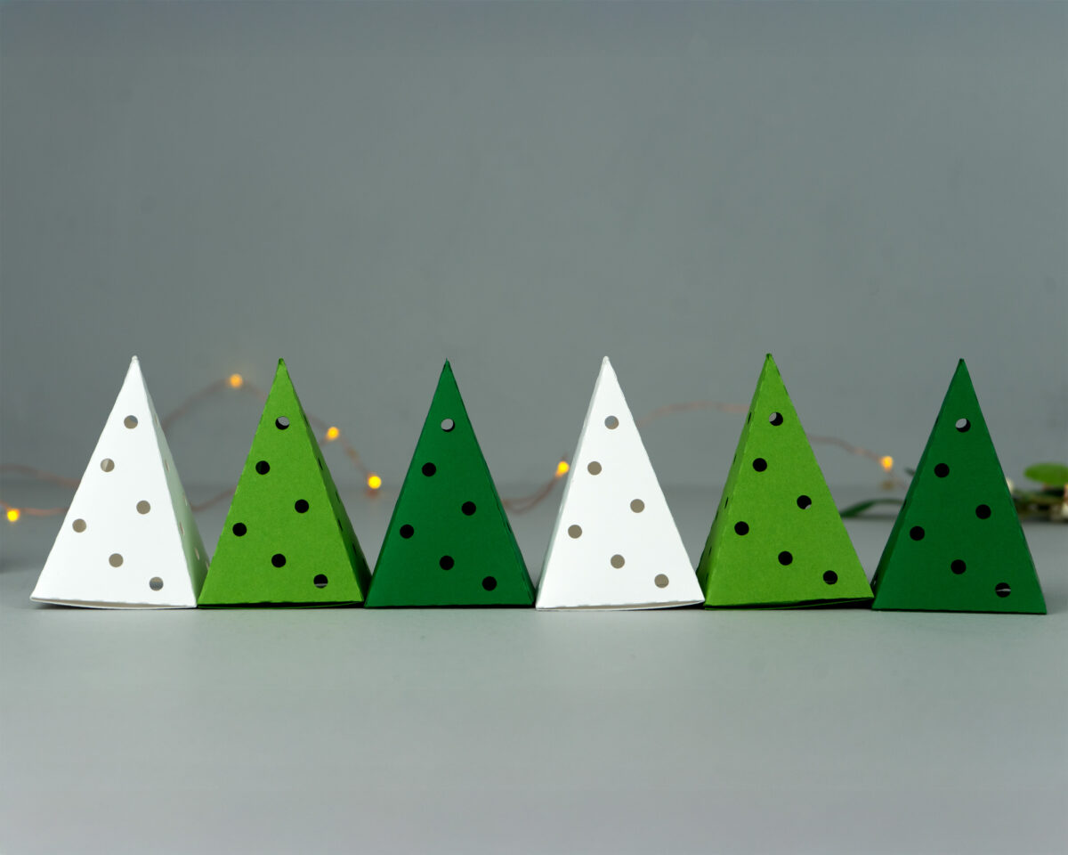 This listing is for 6 of the tree shaped boxes in Greens and White Colors (Candles are not included)