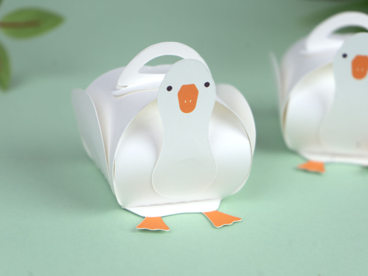 These goose favor boxes are perfect to add some fun to your silly goose birthday or a mother goose themed baby shower!