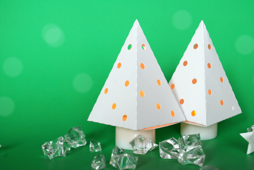 White Christmas Tree 3in1 Luminaries / Favor Box Set of 6